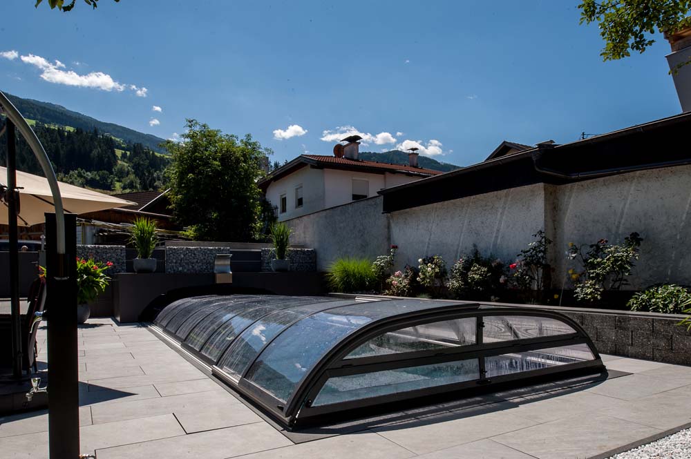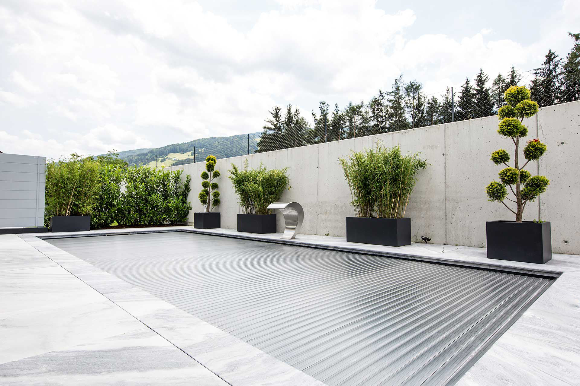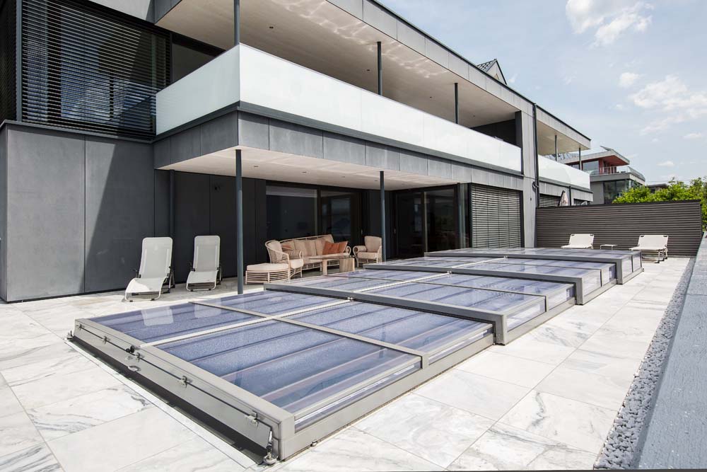 Im Innenbereich erübrigt sich eine Abdeckung, während sie im Außenbereich dringend empfohlen wird – gegen Schmutz und um Unfälle zu verhindern. Die häufigste Variante ist eine Rollabdeckung, die wenig Platz beansprucht. Es gibt aber auch tunnelförmige verglaste Abdeckungen, die aufgeschoben werden und es Ihnen sogar erlauben, bei Regen zu schwimmen oder bei starkem Wind, ohne auszukühlen. Gerne geben wir Ihnen weitere Informationen, wenn Sie Fragen dazu haben.